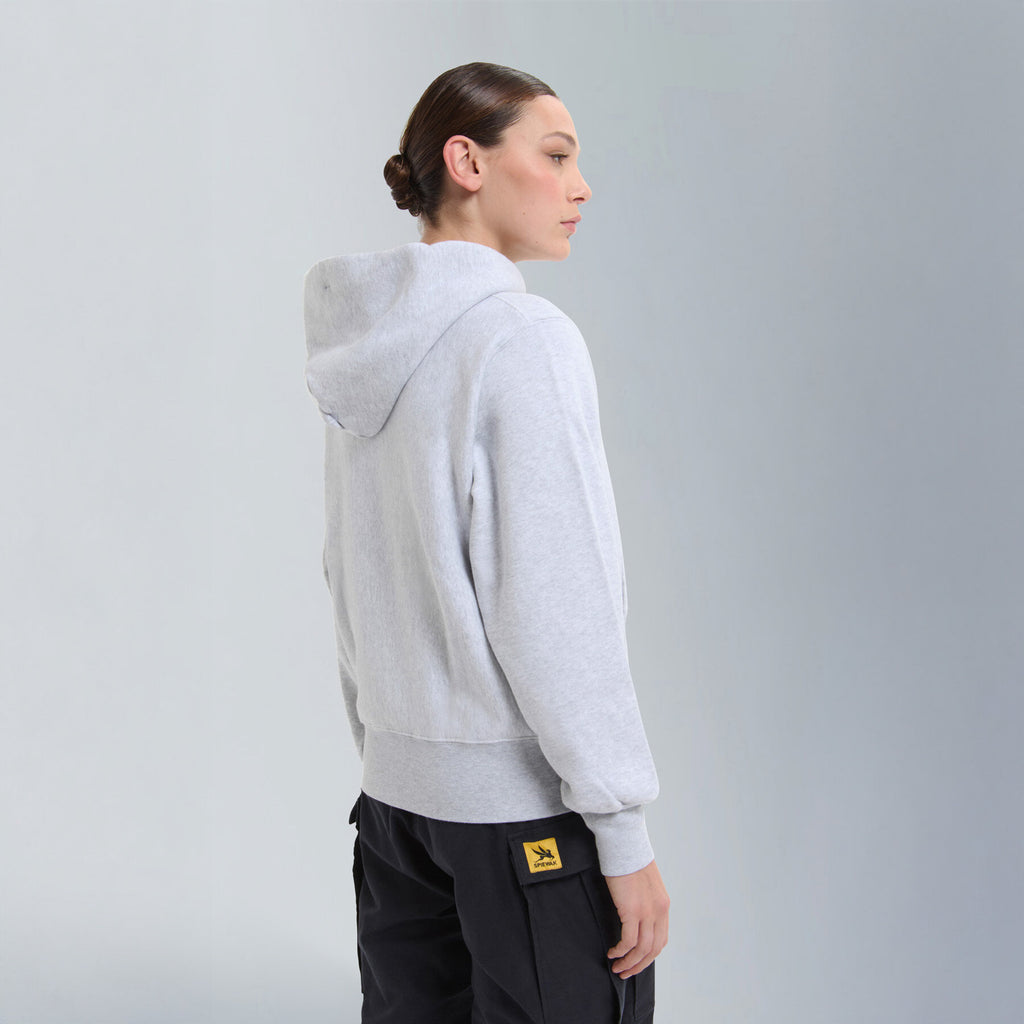 Part of the vintage-inspired sweatshirt series, the Hoodie Pullparka is crafted from classic fleece fabric featuring open-end yarn on the outer layer. This construction gives the piece its signature structured feel and dry touch, echoing the look and texture of true vintage sportswear.